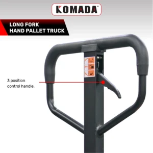 Komada RZ Long Fork Pallet Jack is ideal for handling large or long pallets, supporting up to 3000 kg with smooth operation.