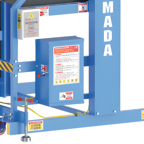 This system ensures maximum safety with a highly accessible Emergency Stop button for instant power cutoff during emergencies. Its mobile design features heavy-duty wheels for effortless repositioning, while the integrated solid stoppers provide a rock-solid foundation, ensuring the lift remains completely stable and secure during heavy-duty loading operations.